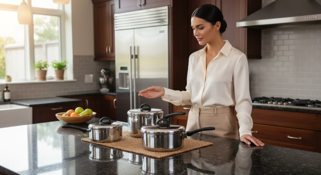 O design funcional, com cabos ergonômicos e tampas bem ajustadas, facilita o manuseio e garante mais segurança no transporte e no momento de servir. Os modelos atuais aliam tradição e modernidade, com linhas que combinam com diferentes estilos de cozinha, seja residencial ou profissional.
