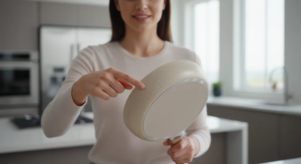 Observe sempre o fundo da panela: ele deve ser plano e robusto. Analise o revestimento, optando por modelos certificados, livres de substâncias tóxicas e com garantia de durabilidade. Verifique também se o cabo é resistente ao calor e se a tampa possui saída de vapor, recursos que aumentam a segurança no uso.