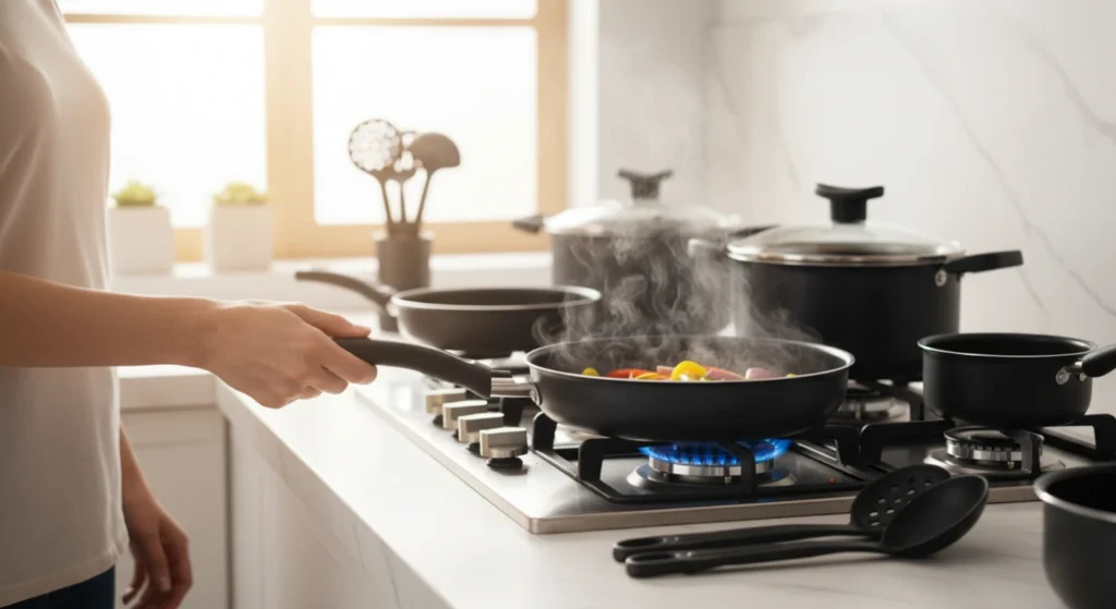 | Troca por Nova Panela Antiaderente | Melhora imediata na qualidade do preparo, mais tempo livre e refeições seguras | Famílias, quem cozinha com frequência ou busca praticidade | Atualização tecnológica e design funcional |