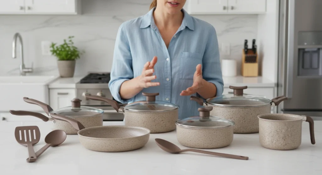 O ideal é ter pelo menos uma panela antiaderente para preparos rápidos e uma de inox para receitas que exigem alta resistência. Assim, você cobre diferentes necessidades do dia a dia e ganha flexibilidade no preparo das refeições.